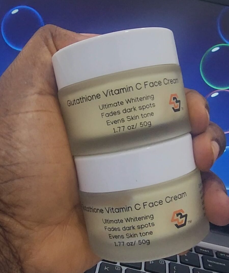 Glutathione Vitamin C Face Cream. A whitening complex combining Glutathione, Vitamin C, and Plant Extracts that whitens intensively. Glutathione and Vitamin C, are anti-oxidants that prevent skin damage due to environmental stress Glutathione stimulates collagen and reduces fine lines and wrinkles. Brightens and smoothes skin for a more radiant and youthful complexion Glutathione blocks tyrosine enzyme thus melanin production gets reduced, skin looks fairer, Reduces hyperpigmentation, blemishes, and spots, restores firmness and elasticity of the skin, Promotes soft and supple skin instantly gives your skin a radiant skin, smooth, and skin appears more consistent in color.